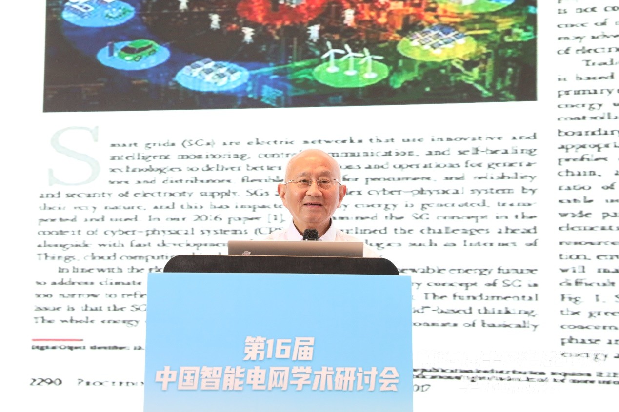 中國工程院院士、國網(wǎng)電力科學(xué)研究院名譽(yù)院長薛禹勝教授作《新型能源體系(CPSS-EEE)的多目標(biāo)協(xié)調(diào)規(guī)劃》報告