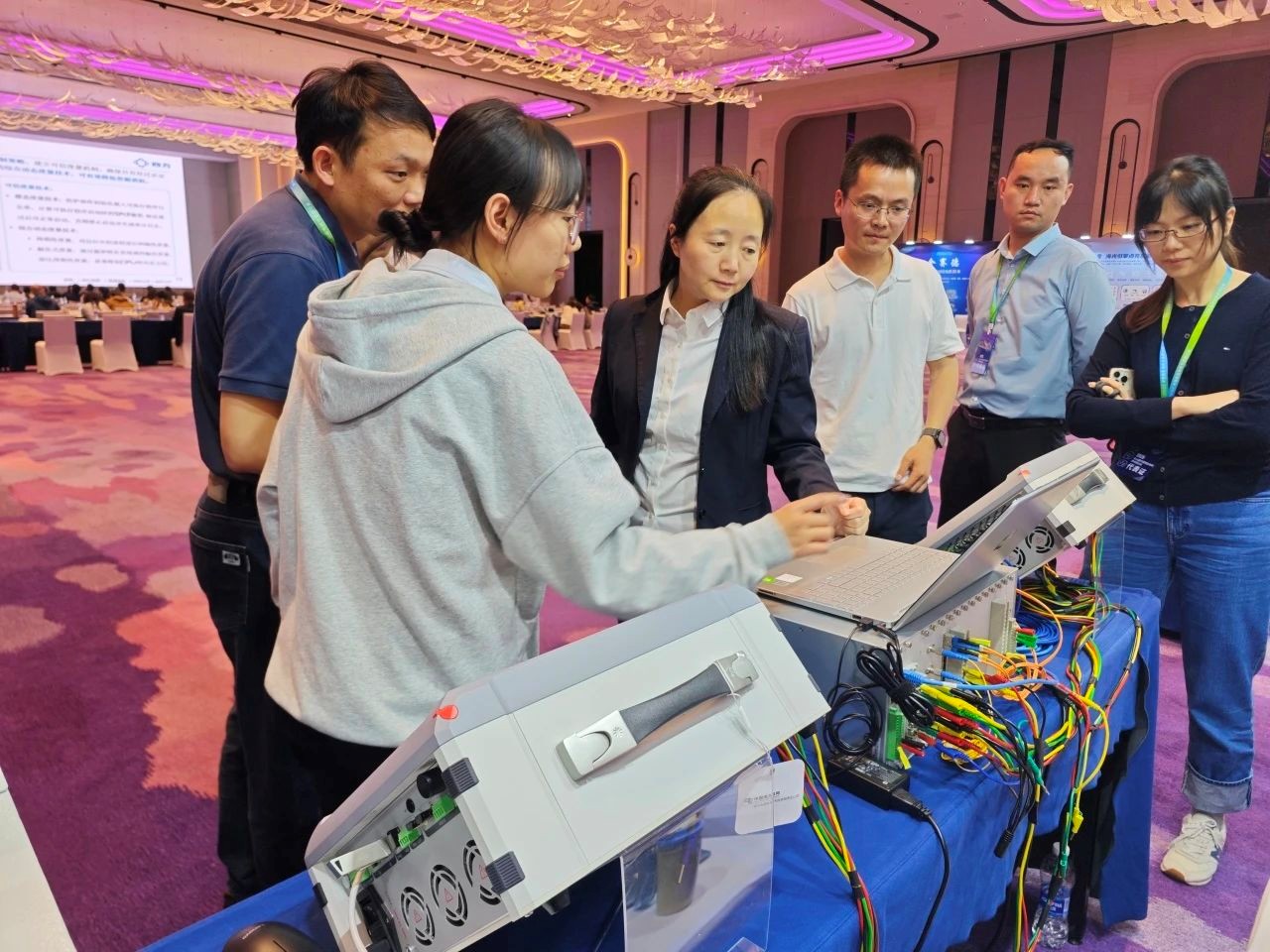 展覽展示區(qū)域,公司通過實物展示、技術(shù)講解等形式,全方位呈現(xiàn)了智能電網(wǎng)技術(shù)應(yīng)用與科研創(chuàng)新,吸引了眾多專家及與會代表駐足觀看,現(xiàn)場氣氛熱烈。